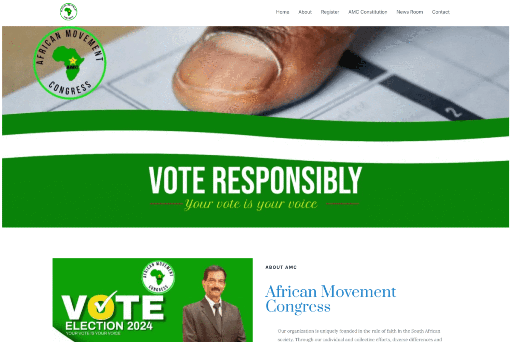 Project Details: Develop website for the AMC political party. Collaboration project with another developer.